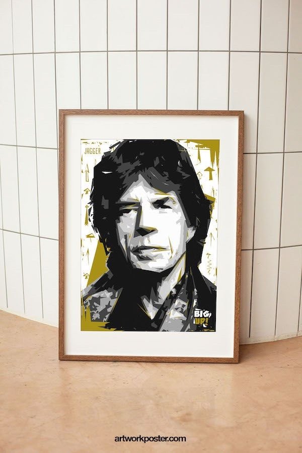 Abstract illustration of British rock singer legend Mick Jagger. He became famous as the frontman of the British Rock, blues, pop, hard rock and rock & roll group "The Rolling Stones". Mick Jagger virtually invented the concept of the rock & roll frontman. Handmade, numbered, signed and limited art poster by BIGUP OFFICIAL. Perfect combinable with other motifs of the Rockstar series.