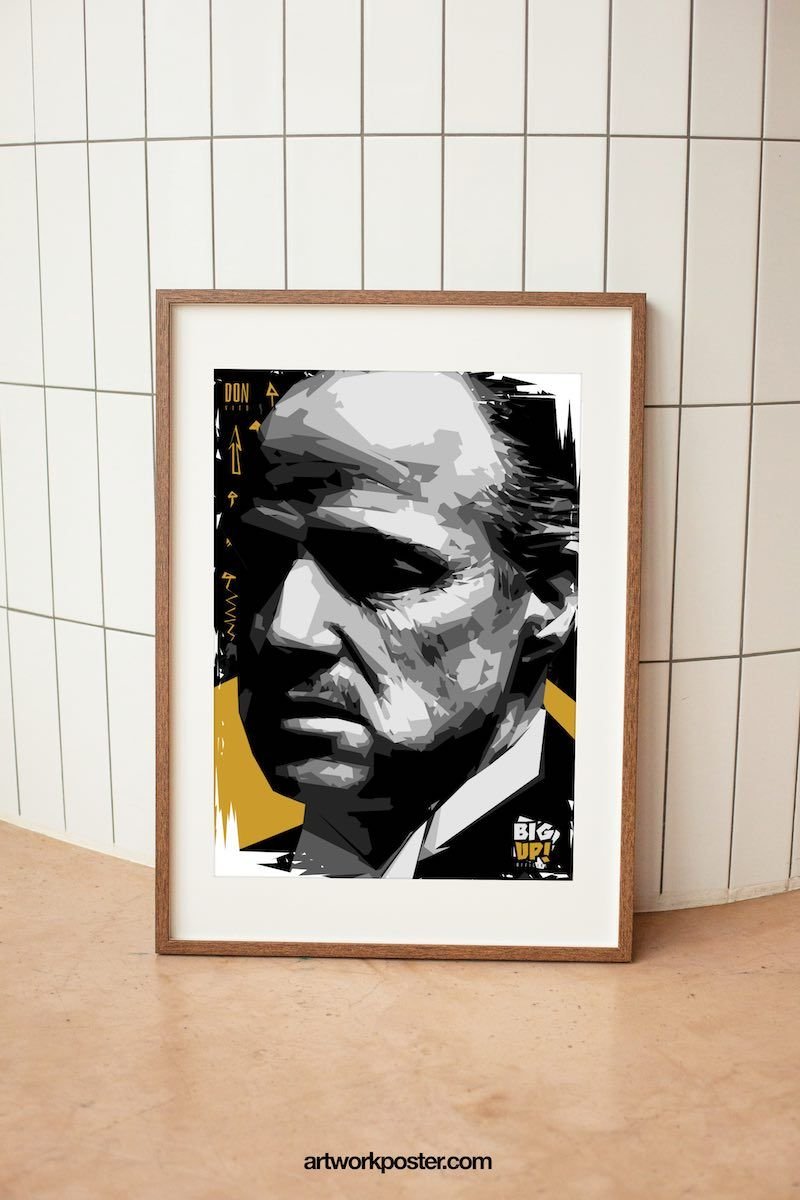 Abstract illustration of Don Vito Corleone / Marlon Brando from Francis Ford Coppola´s mafia movie The Godfather. Handmade, numbered, signed and limited art poster by BIGUP OFFICIAL. Perfect combinable with other motifs of the Movies series.