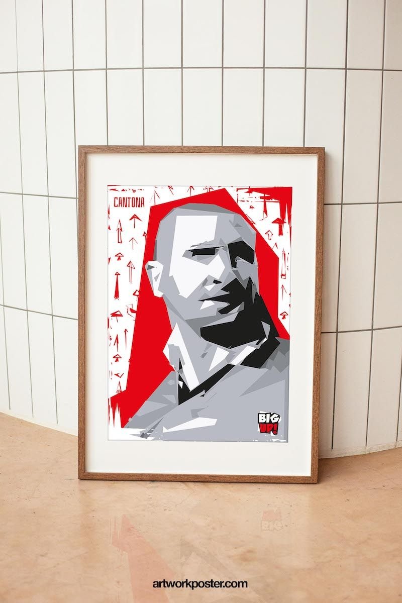 Abstract illustration of French football legend Eric Cantona. He was one of the sport's biggest stars in the 1990s and is best known for his temperamental play. Handmade, numbered, signed and limited art poster by BIGUP OFFICIAL. Perfect combinable with other motifs of the Football / Soccer series.