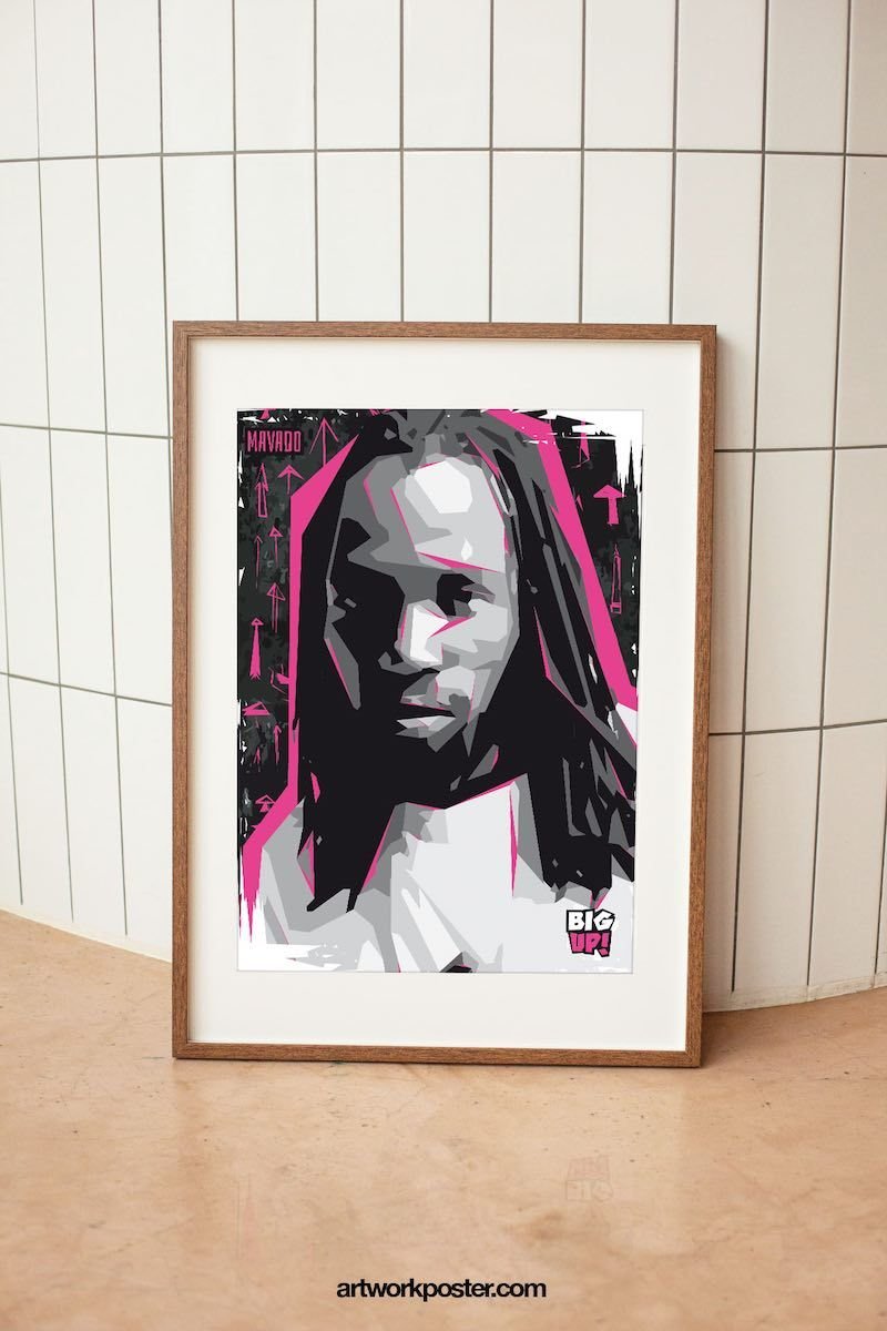 Abstract illustrated poster art of Jamaican dancehall singer and songwriter Mavado. Influenced by Bounty Killer and the 90s dancehall, he became the biggest badman in dancehall and an internationally known Jamaican artist. Handmade, numbered, signed and limited art poster by BIGUP OFFICIAL. Perfect combinable with other motifs of the Reggae & Dancehall series.