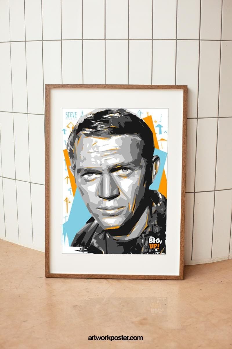 Abstract illustration of US-American actor legend Steve McQueen. He was one of the most renowned film actors in the USA in the 1960s and 1970s and appeared in westerns but also in adventure and action films. Handmade, numbered, signed and limited art poster by BIGUP OFFICIAL. Perfect combinable with other motifs of the Movie series.