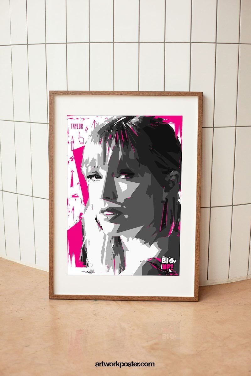 Abstract illustrated poster art of US-American singer-songwriter Taylor Swift. She is one of the most successful artists worldwide and her discography spans multiple genres. Handmade, numbered, signed and limited art poster by BIGUP OFFICIAL. Perfect combinable with other motifs of the Popstars series.