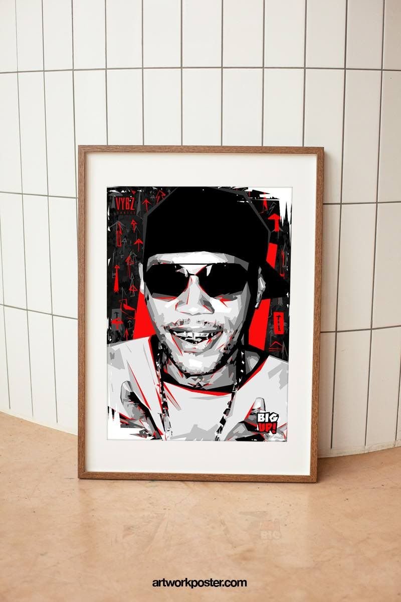Abstract illustrated poster art of Jamaican dancehall artist Adidja Azim Palmer better known as Vybz Kartel aka "World Boss". He is a world-famous dancehall singer-songwriter with a huge discography and a history of chatting over blazing dancehall riddims with heartfelt lyrics touching on the political, personal, and sexual. Handmade, numbered, signed and limited art poster by BIGUP OFFICIAL. Perfect combinable with other motifs of the Reggae & Dancehall series.